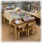お客様に絵本に囲まれた、ゆったりとした時間を提供したいと考え、椅子とテーブルをご用意しています。お座わり頂いてゆっくりと絵本を読んで下さい!子育てや仕事に疲れた時、ホッとひといきつける場としてもご利用頂けたら嬉しいです!