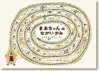 | お父さん、お母さん、おじいちゃん、おばあちゃん、そして個性的な10匹のねずみの兄弟が今日はお月見です。カゴのエレベーターといくつもの梯子を上ってどんどん木の上に上っていき、みんなで力を合わせてお月見台をこしらえます。ページをめくるたびに空の色が少しずつ変わっていきだんだん夜になっていくのは本当に美しく月が出てくるところでは、あまりの神々しい姿にねずみたちとともに手を合わしたくなるほどです。 |